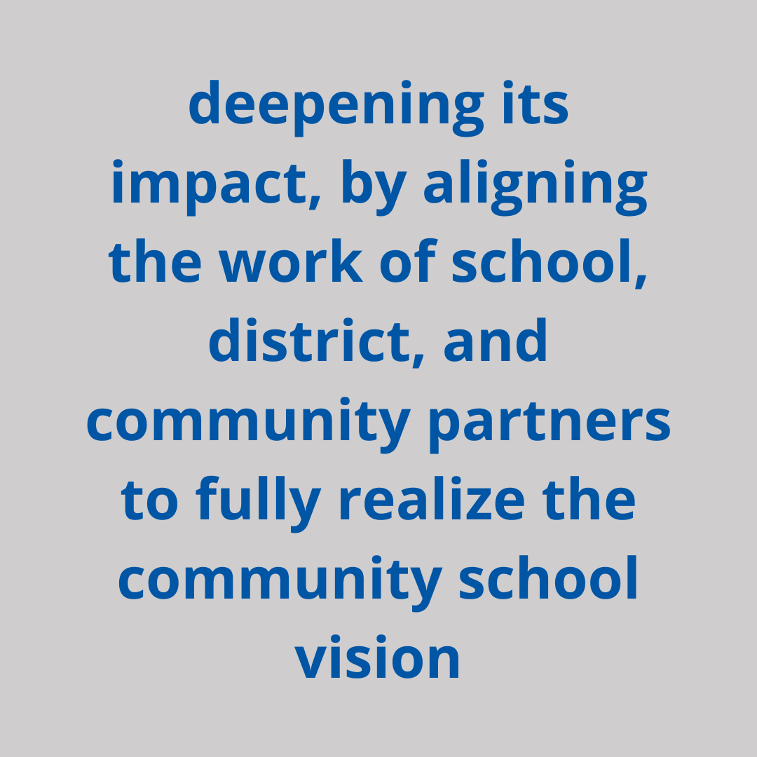 Develop archetypes of the work aligned to the Essentials for Community School Transformation (i.e., powerful student and family engagement; collaborative leadership/shared power and voice; expanded, enriched learning opportunities; rigorous, community-connected classroom instruction; culture of belonging, safety, care) to serve as both internal guidance/best practice sharing and as a foundation for collaborative planning with partners.